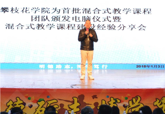 为推动信息技术在教学中的应用,提高教师的现代教育技术运用能力和水平,加快混合式教学课程建设,提高在线教育综合平台应用水平,我校于1月3日下午在会堂举行了攀枝花学院举行混合式教学课程建设经验分享会,并为首批81门混合式教学课程团队颁发笔记本电脑。学校领导、相关单位负责人、督导、混合式教学课程建设团队人员、师生代表、第二临床医学院代表共400余人参会。