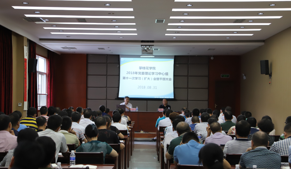 8月31日下午,我校在办公楼四楼附楼会议室召开党委理论学习中心组2018年第十一次学习(扩大)会暨干部大会,就强化思想建党、组织强党和纪律治党,全面加强党员干部队伍建设进行专题学习。全体校领导、中层及以上干部参加会议。校党委书记肖立军主持会议。