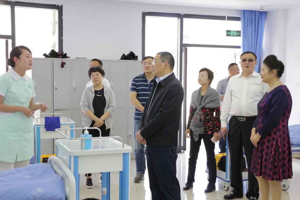 何延政一行先后走访了康养学院护理实训中心、图书馆等地,认真查看了护理教学设施和护理班的实践操作,听取了康养学院关于办学理念、办学特色及师资队伍等相关情况的汇报。对我校在康养领域所做的工作和取得的成绩给予了充分肯定。他指出,康养产业是一个朝阳产业,希望康养学院越办越好,培养更多的康养人才。