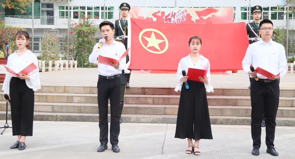 429日上午,我校在阳光广场举行“青春心向党·建功新时代”纪念五四运动100周年特别主题团日活动。活动包括升旗仪式、现场讲授微团课、团员学生代表献词朗诵、入团宣誓等内容。学校党委副书记、校长王曙光出席活动并为新团员颁发团员证。学校党委副书记、纪委书记彭徐出席活动并讲话。
