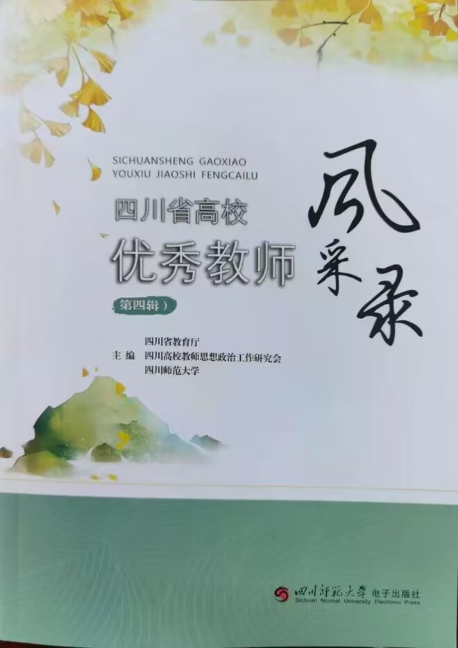 我校生化学院刘姗、马克思主义学院朱云生教书育人的先进事迹入选由四川省教育厅、四川高校教师思想政治工作研究会和四川师范大学主编的《四川省高校优秀教师风采录》(第四辑)。