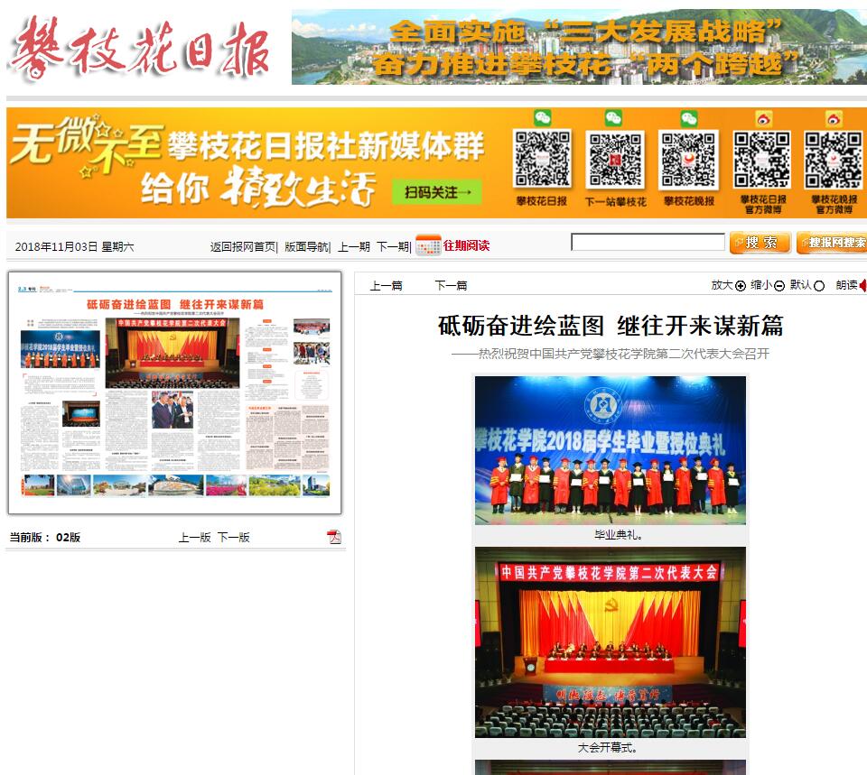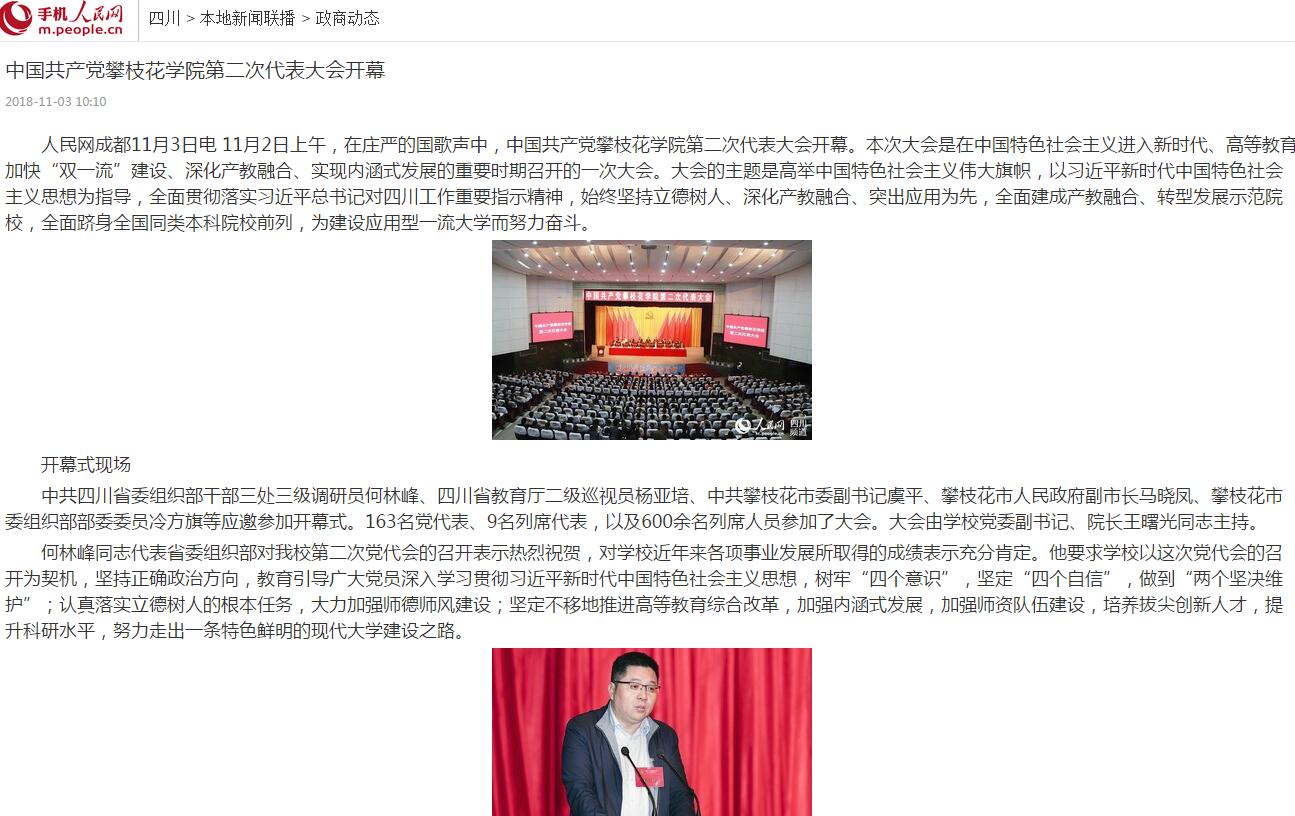 人民网、教育导报、中国高校之窗、四川新闻网、攀枝花日报、攀枝花电视台等多家媒体纷纷对我校第二次党代会召开的盛况进行了报道。