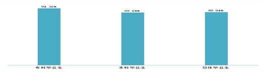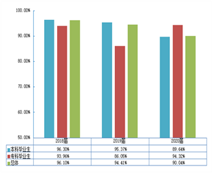 近三届毕业生就业率始终保持在90.00%以上,其中2020届本科毕业生的就业率为89.64%,专科毕业生的就业率为94.32%。