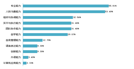 图5- 6 2020届本科毕业生认为重要性占比排名前十位的基础能力及其水平