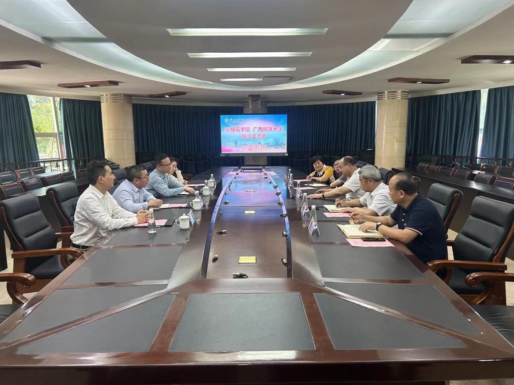 座谈会上,彭徐介绍了学校发展历程和建校40年来取得的办学成效,并就就攀枝花纪检监察学院的办学机制、运行情况、培训成效等进行了介绍。韦惠文就广西民族大学办学情况、纪检监察专业建设等进行了介绍。双方就法学人才培养、纪检监察专业申报与建设等事项进行了深入交流,双方表示愿意就纪检监察人才培养进一步加强交流与合作。