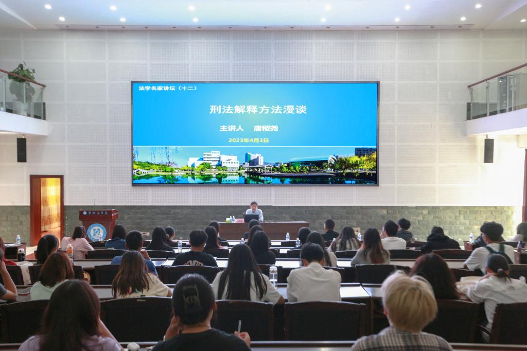 4月3日上午,四川师范大学法学院党委书记、教育部青少年法治教育中心常务副主任唐稷尧教授应邀来我校做“刑法解释方法漫谈”的学术讲座,讲座由法学院学院副院长(主持工作)杨开华主持,法学院200余名师生代表参加讲座。