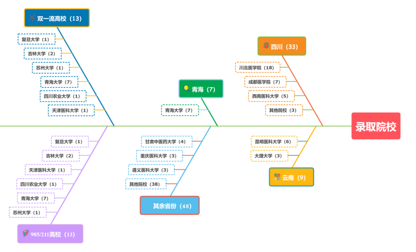 从录取院校质量上来看,13名同学被“双一流”高校录取,其中复旦大学1人、吉林大学2人,青海大学7人,苏州大学1人,天津医科大学1人,四川农业大学1人。同时,学院更是涌现了2个学霸寝室,西苑1号楼217寝室,4女孩成功考取江苏大学、安徽医科大学、宁夏医科大学、汕头大学。西苑3号楼116寝室的名有志青年怀揣梦想,找到了属于他们的目标,成功被哈尔滨医科大学、西南医科大学、滨州医学院、青海大学、川北医学院录取。
