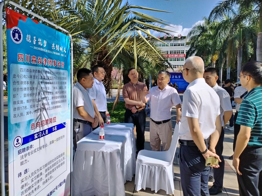 为认真贯彻落实教育部、省教育厅关于开展2023届高校毕业生就业“百日冲刺”行动的通知要求,5月27日上午,攀枝花市司法局、攀枝花市人力资源和社会保障局、攀枝花学院在分析测试中心共同主办“携手筑梦、共创明天”2023年攀枝花市法治人才专场招聘会。副校长王兵,市司法局党组书记、局长刘毅,副局长杜治勇,市人社局副局长徐洪江,市律师协会会长刘晓东,法学院领导班子及招就处负责人亲临现场指导。