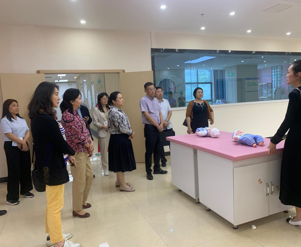 调研组一行先后参观了攀枝花康养职业技能培训基地及虚拟仿真实验教学中心,实地察看了母婴护理实训室、老年护理实训室、老年关爱室和康养研究成果展等,调研了康养学院在康养护理领域的建设发展以及推进产教融合、培养康养+专业应用人才的特色和举措。考察期间,双方围绕康养+教育培训、养老事业和康养产业高质量发展等进行了深入交流研讨。陈国凤一行对我校康养学院的办学定位、办学方向、办学特色及产学研取得的成效给予了充分肯定。
