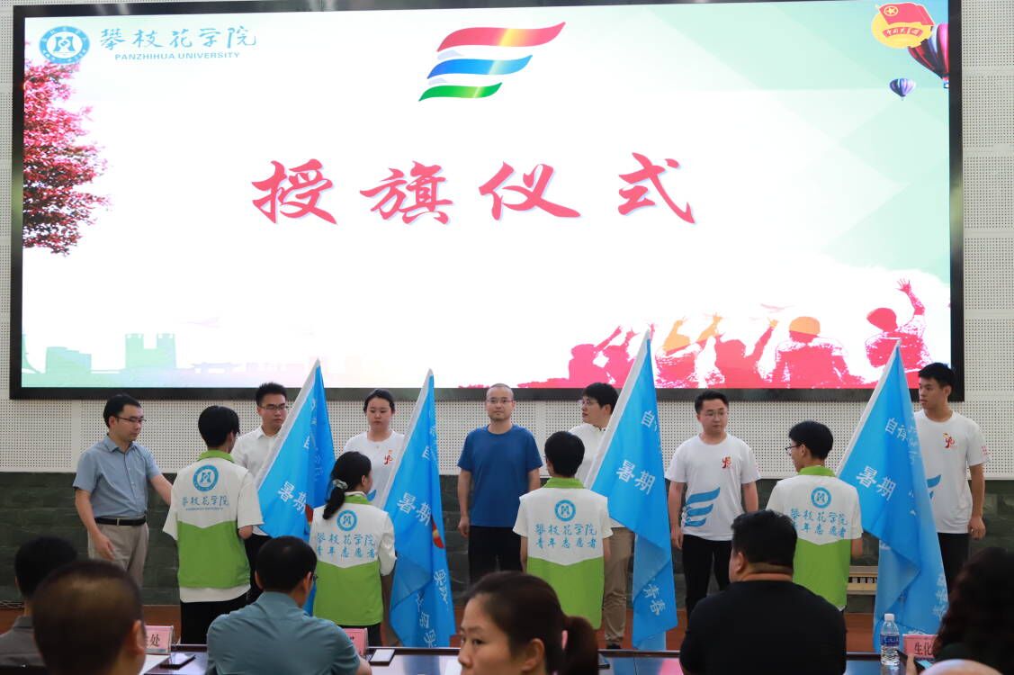 会上,2022年社会实践全国优秀团队作成果汇报,2023年领队老师和学生代表发言,马克思主义学院副院长罗春秋为参与师生作实践论文撰写培训,团委学生干部为师生分享实践论文投稿技巧,同时,与会领导为2023年暑期社会实践团队授旗。