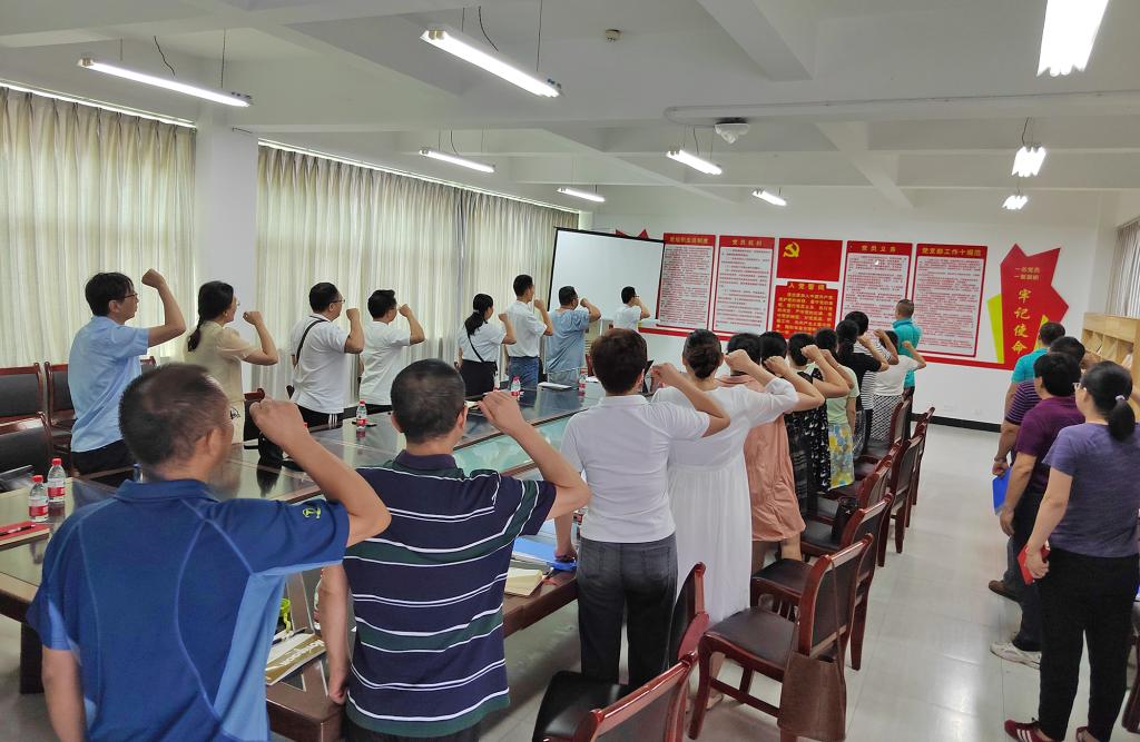 期间,全体党员面向鲜红的党旗重温了入党誓词,进一步增强党员的荣誉感、责任感和使命感。