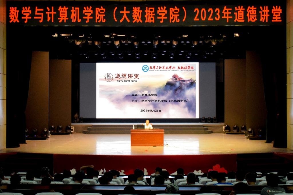 为深入学习贯彻落实党的二十大精神,大力弘扬新时代道德文明新风,发挥先进典型在人才培养中的示范引领作用,9月21日,数计学院在学生会堂开展以树立远大目标,开启进阶人生为主题的道德讲堂。学院分管相关工作领导、辅导员及700名学生代表参与,本次讲座邀请优秀退休教师金作衡担任主讲。