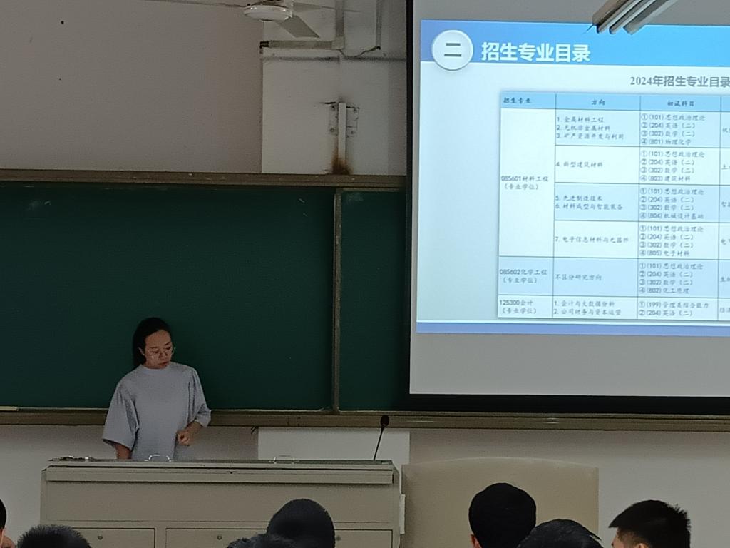 为进一步夯实高层次办学基础、增强学科建设实力,钒钛学院于10月7日组织召开2024年材料与化工专业硕士研究生招生校内宣讲会会议由副教授张士举主持,学校科研处叶珊、硕士生导师代表以及2024届辅导员等出席宣讲会,应届考研学生80余人参加会议。