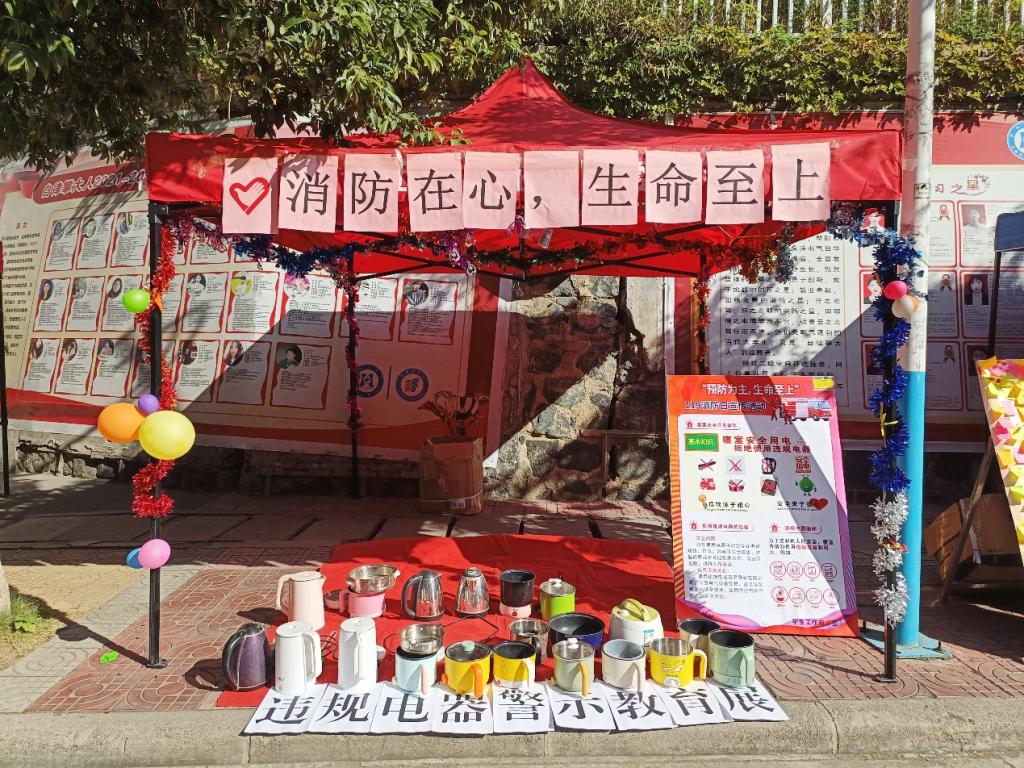 11月9日上午,学校本部九号楼对面、西苑篮球场设置宣传点,通过开展消防安全知识问答,展示违规电器和观看消防安全小视频等多种形式,向广大学生普及消防安安全知识,学生积极参与知识问答,发放问题1000余份。学校在学生社区各楼栋张贴了安全知识喷绘,入脑入心加强安全教育。