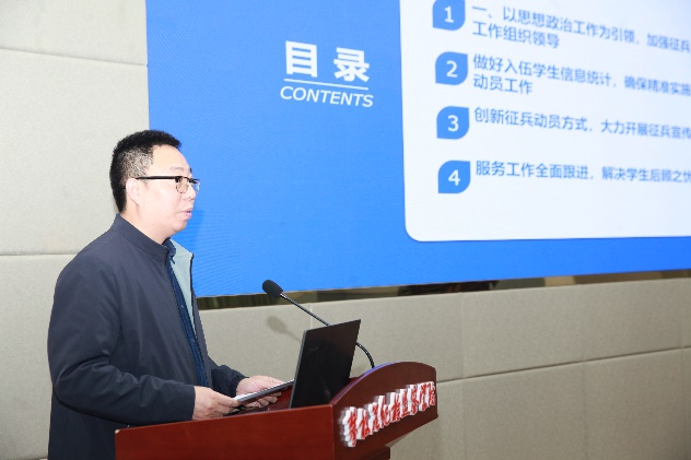 12月14日下午,我校在纪检监察学院会议室组织召开2023年征兵工作、退伍大学生工作总结暨2024年征兵工作培训会。党委常委、副校长石维富出席会议并讲话,市退役军人事务局副局长孙晓蓉,东区人武部中校副部长杨琪,学校武装部、宣传部、教务处、保卫处、招就处、团委负责人,各二级学院分管学生工作领导、学生科科长、毕业班辅导员,退伍大学生代表,第十一届国旗护卫队代表参加会议。