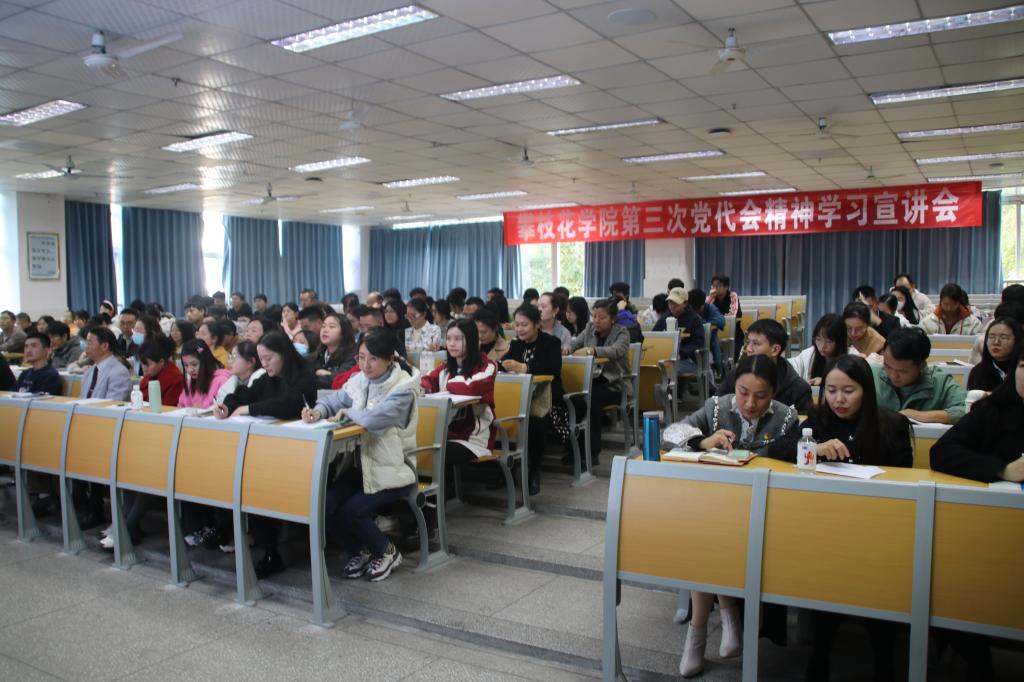 12月20日下午在西苑笃行楼J2-1教室,康养学院全体教职工和部分学生代表100余人参加了学校第三次党代会精神学习宣讲会,基础医学院党委书记李东为师生宣讲——《贯彻落实第三次党代会精神 为建设阳光健康美丽攀大而努力奋斗》。