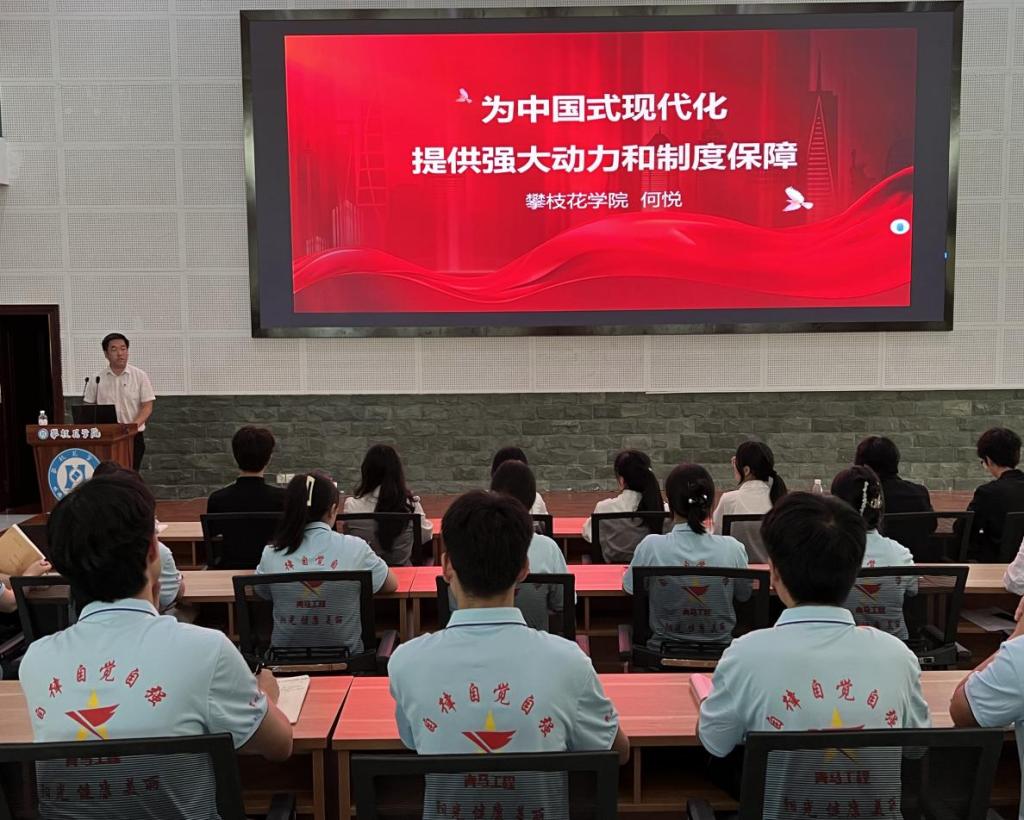 为学习贯彻党的二十届三中全会精神,激励攀大青年为强国建设、民族复兴伟业挺膺担当,920日下午,团委于学术报告厅举行“青春为中国式现代化挺膺担当”校级示范团课。第四期“青马工程”班学员和校级团学组织学生代表近100余人参加。