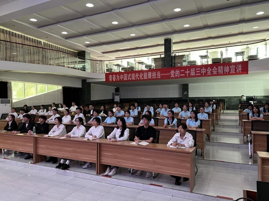 同学们纷纷表示,何悦老师全方面解读了党的二十届三中全会的历史使命和科学谋划,大家将继续夯实《公报》和《决定》的内容;深刻领会和把握进一步全面深化改革的主题、重大原则和重大举措;牢记习近平总书记的殷殷嘱托,切实增强历史责任感和使命感,在强国建设、民族复兴伟业中勇当先锋队、突击队。