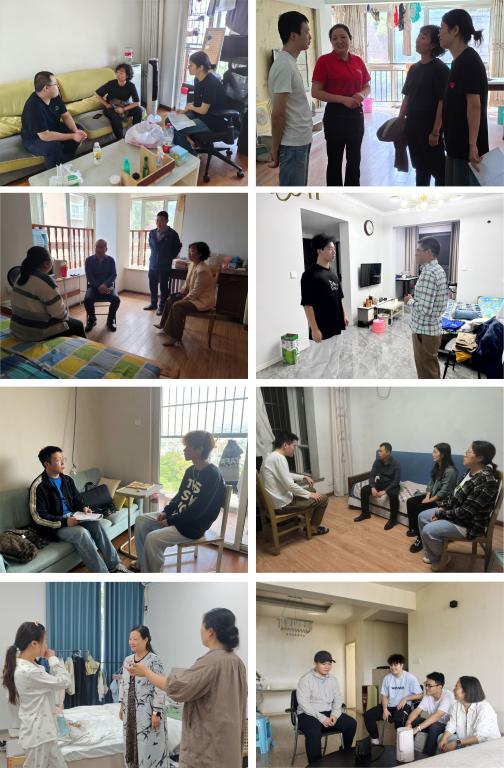 走访过程中,学工部老师各学院分管学生工作领导、辅导员、班主任与学生家长就家庭状况、学业压力、身心发展及职业规划等情况进行了深入的交谈老师们仔细查看了学生的居住条件、周边环境以及房屋防盗、消防治安等情况鼓励学生要合理安排学习时间,积极参加学校各项活动,每周主动向辅导员汇报生活情况,遇到任何困难都要第一时间学校反映,积极沟通,共同解决。
