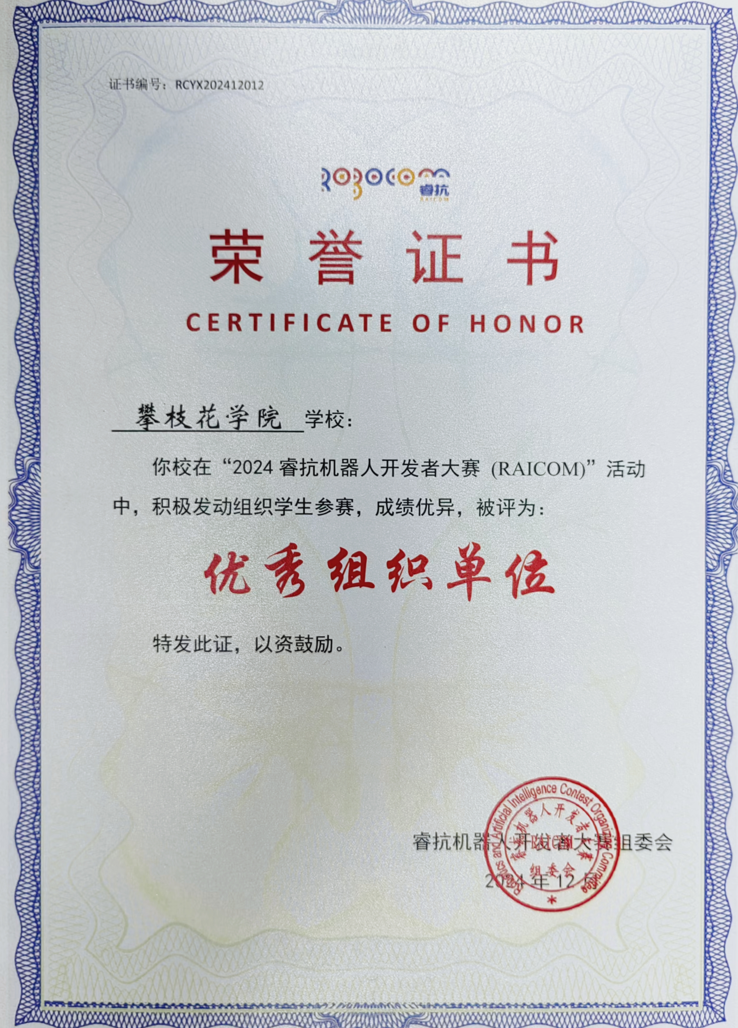 日,睿抗机器人学术年会传来喜讯,我校以卓越的组织能力和显著的竞赛成果荣获“优秀组织单位”奖项。这一荣誉不仅展现了我校在机器人领域教育与实践的卓越成果和积极贡献,也是对学校相关科研团队在推动科技创新和人才培养方面所做努力的肯定。