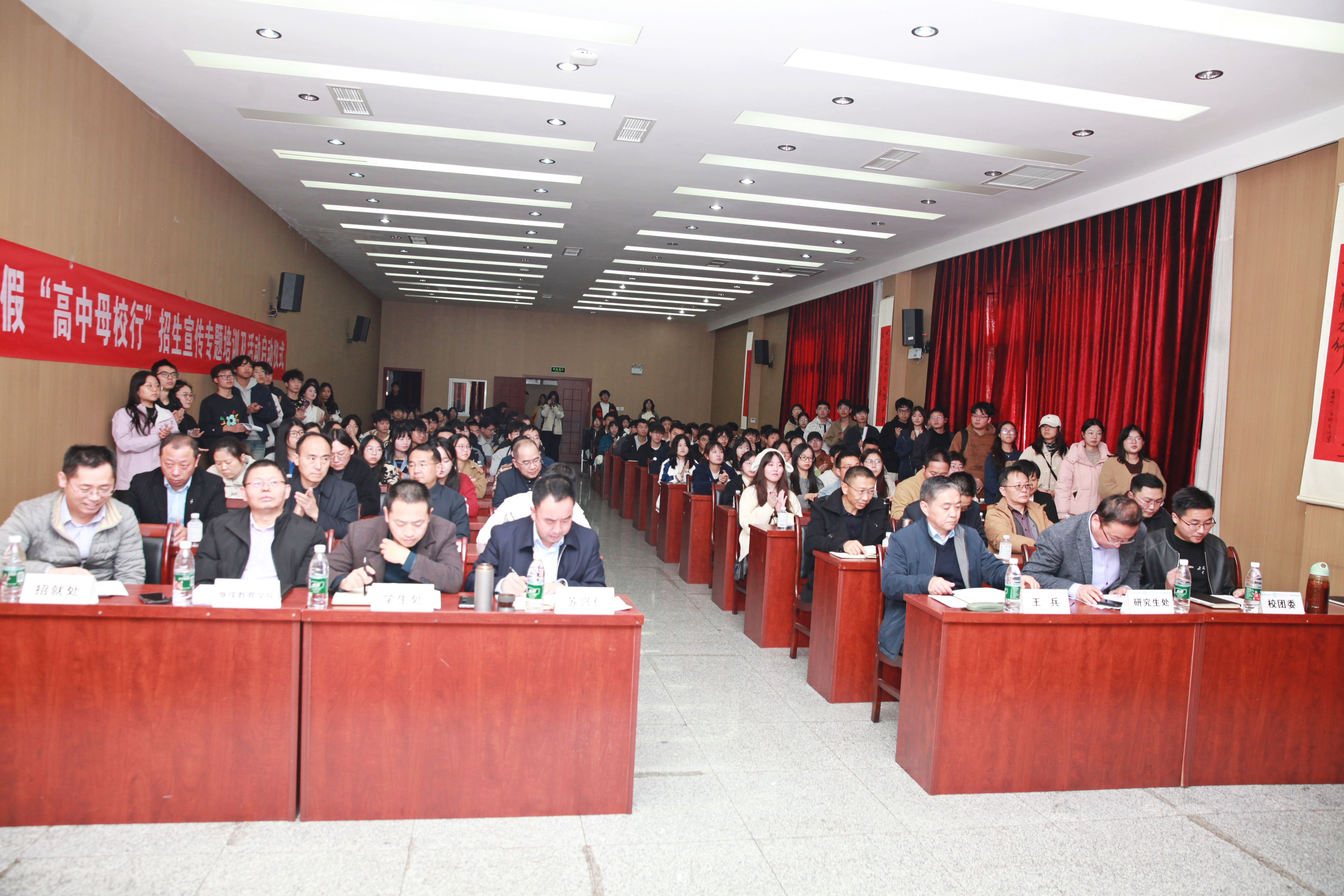 1月2日下午,我校在弘毅楼416会议室举行2025年寒假“高中母校行”招生宣传专题培训及活动启动仪式。副校长王兵出席会议并讲话,校党委常委、宣传部部长苏兴仁,学生处、研究生处、继续教育学院、校团委、招就处相关负责人,二级学院分管招生工作院领导、学生科科长以及参加2025年寒暑假“高中母校行”招生宣传活动学生代表160余人参会。活动由招生就业处处长唐林主持。