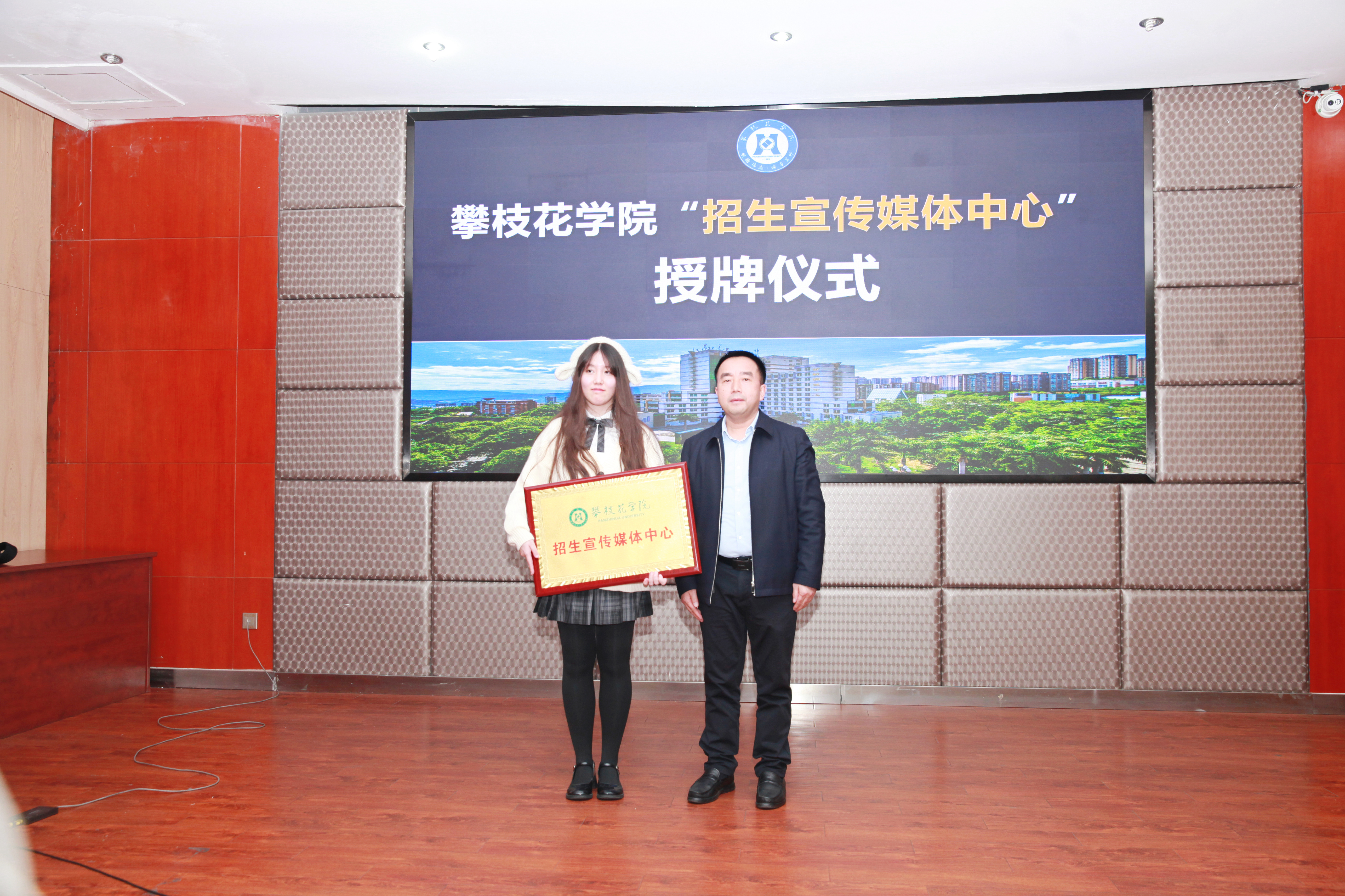 会上,苏兴仁为“攀枝花学院招生宣传媒体中心”授牌。