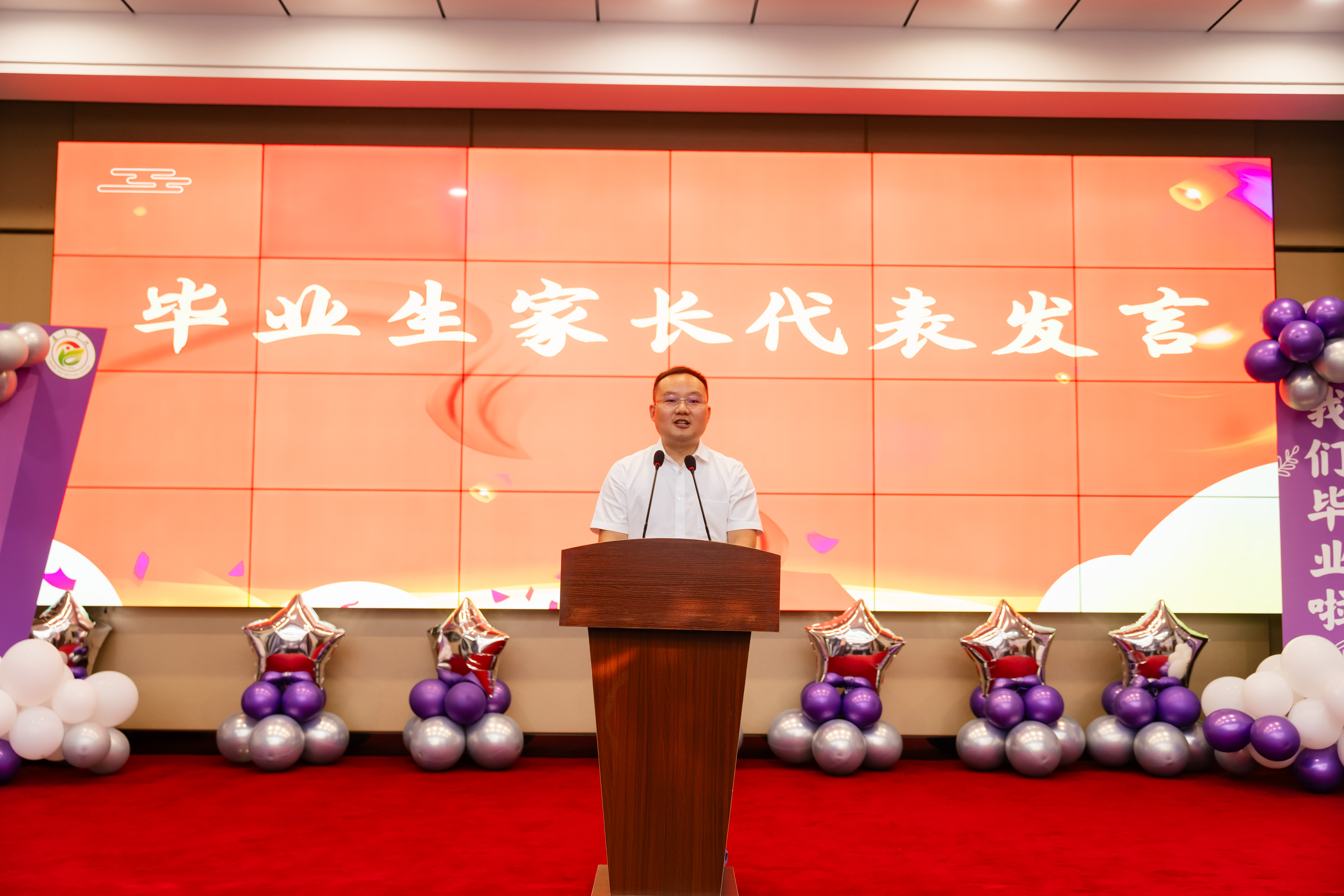 远道而来的毕业生家长代表杨帆先生也登台发言,表达了对学院和老师诚挚的感谢。他分享了孩子在康养学院从懵懂少年到自信青年的蜕变,对孩子的未来寄予殷切的希望。
