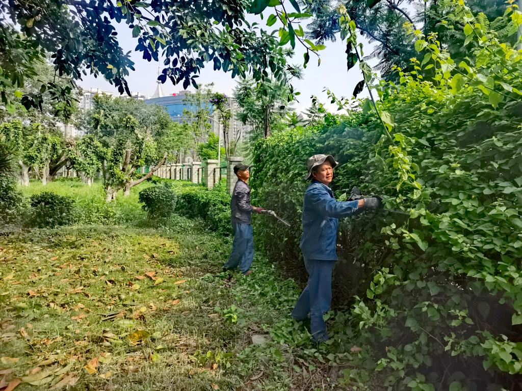 暑期,绿化工人们浇水灌溉、修剪整形、防治病虫害,精心呵护着一草一木,维持着校园的盎然绿意,为师生保留一片清凉静谧之地。环境卫生保洁工作科学调度、有序开展确保人流高频区域常态化精细保洁与垃圾及时清运,全力守护暑期校园环境的整洁与卫生。他们的身影出现在晨曦微露时,忙碌于烈日当空下,坚守在夜幕降临后,用辛勤的劳动换来了校园始终如一的清新与美丽。