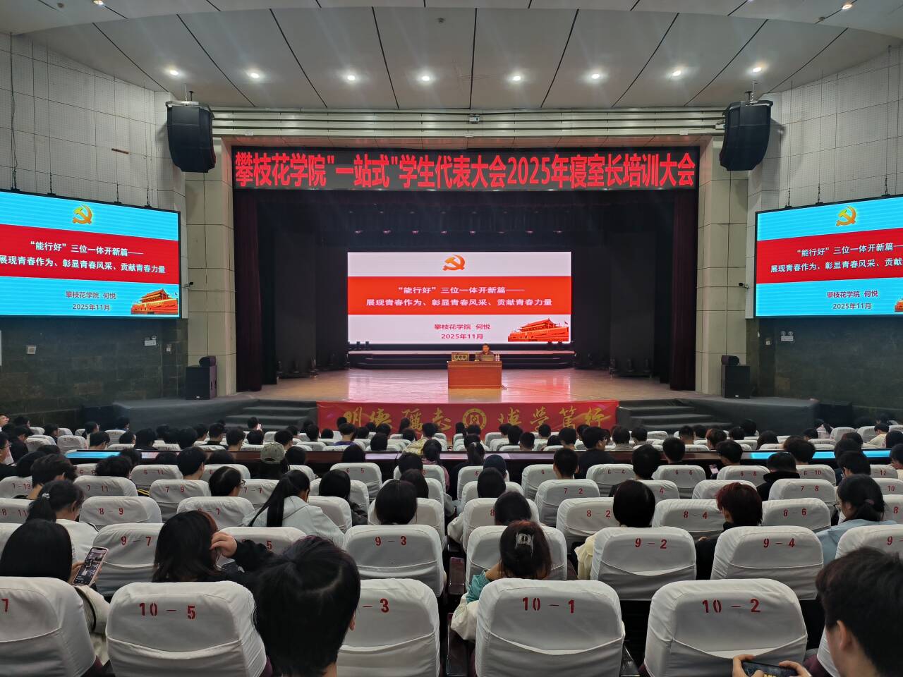 为深入推进“一站式”学生社区综合管理模式建设,强化学生自我教育、自我管理、自我服务、自我监督的“四自”能力培养,11月14日至19日,我校在阳光会堂举办2025级寝室长培训会,2025级全体寝室长及辅导员代表共计600余人参加培训。