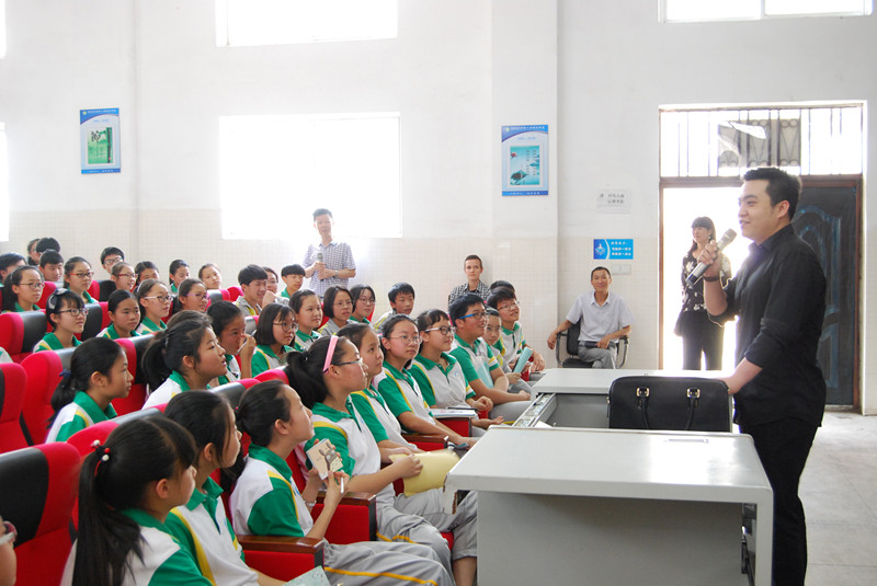 志愿者们 对教师的 英语教学与学生 学习 情况进行了了解 随后, 在学校礼堂 开展 了“中学英语学习方法”和培养英语学习兴趣的“美国风情”讲座。